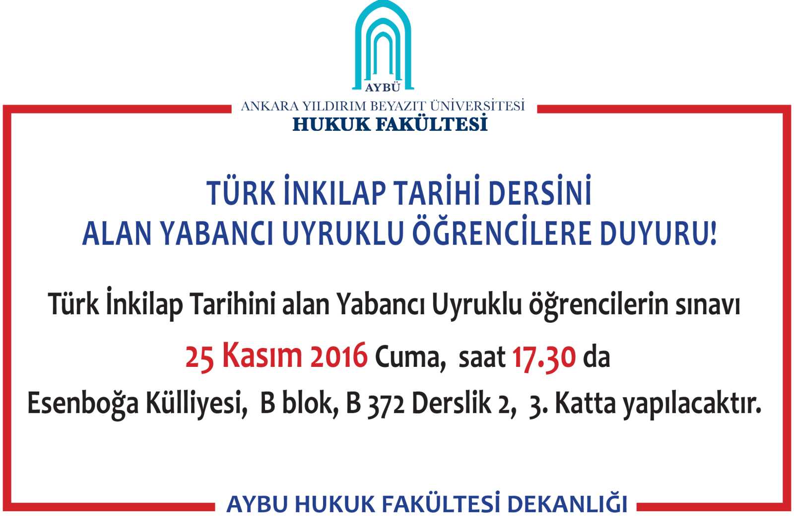 Türk İnkilap Tarihi Dersini Alan Yabancı Uyruklu Öğrencilere Duyuru