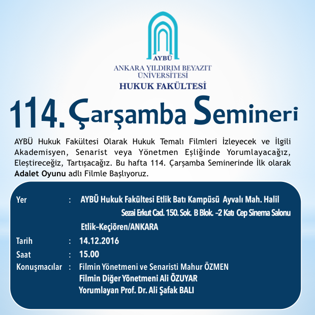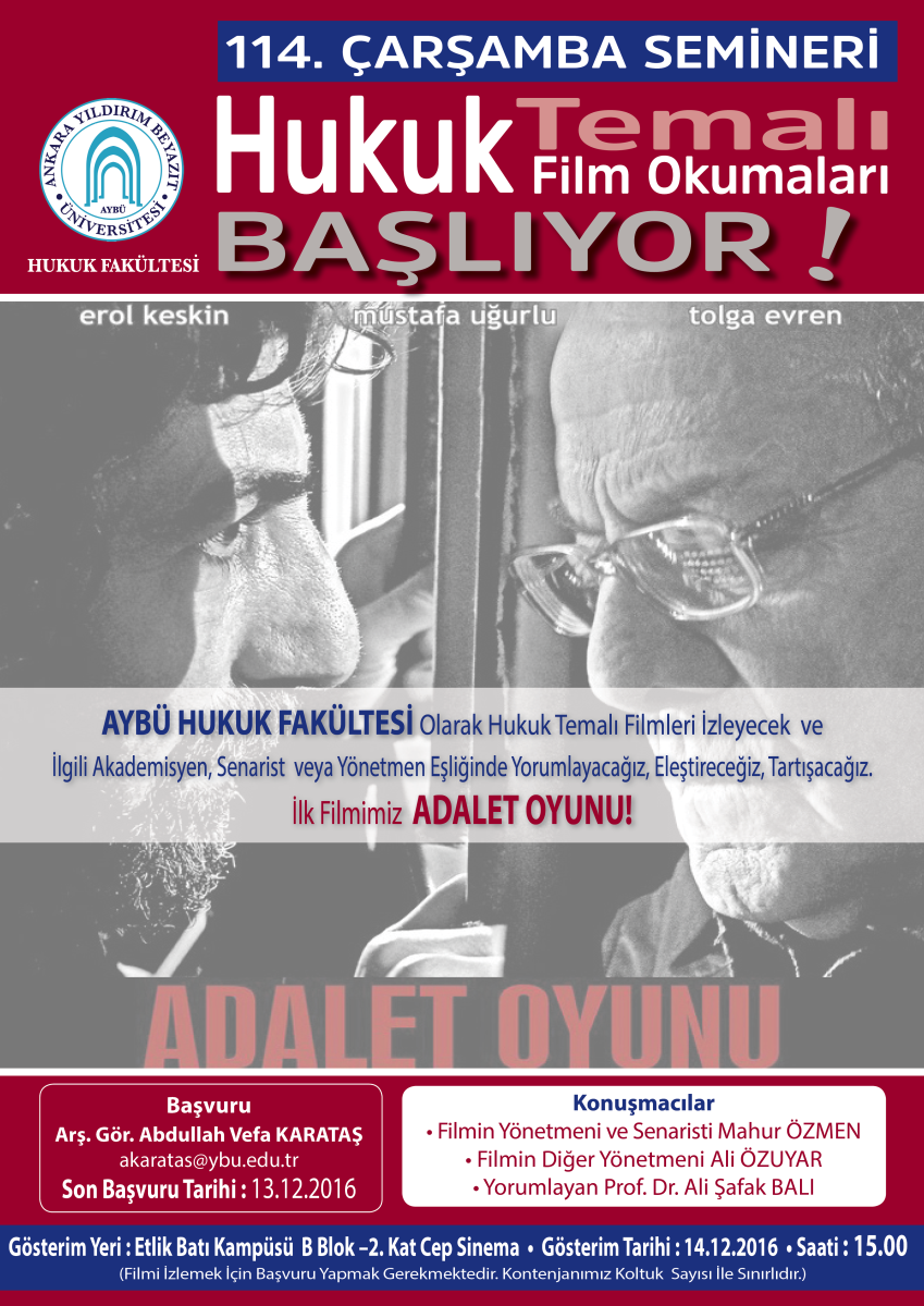 AYBÜ Hukuk Fakültesi 114. Çarşamba Semineri – Hukuk Temalı Film Okumaları Başlıyor.