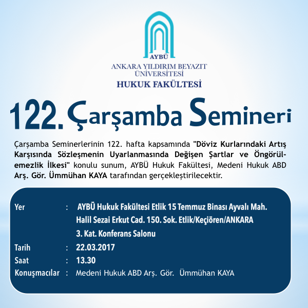 AYBÜ Hukuk Fakültesi Çarşamba Semineri 122-Döviz Kurlarındaki Artış Karşısında Sözleşmenin Uyarlanmasında Değişen Şartlar ve Öngörülemezlik İlkesi