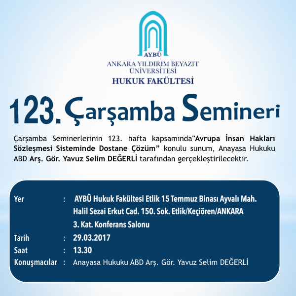 AYBÜ Hukuk Fakültesi Çarşamba Semineri 123-Avrupa İnsan HaklarıSözleşmesi Sisteminde Dostane Çözüm