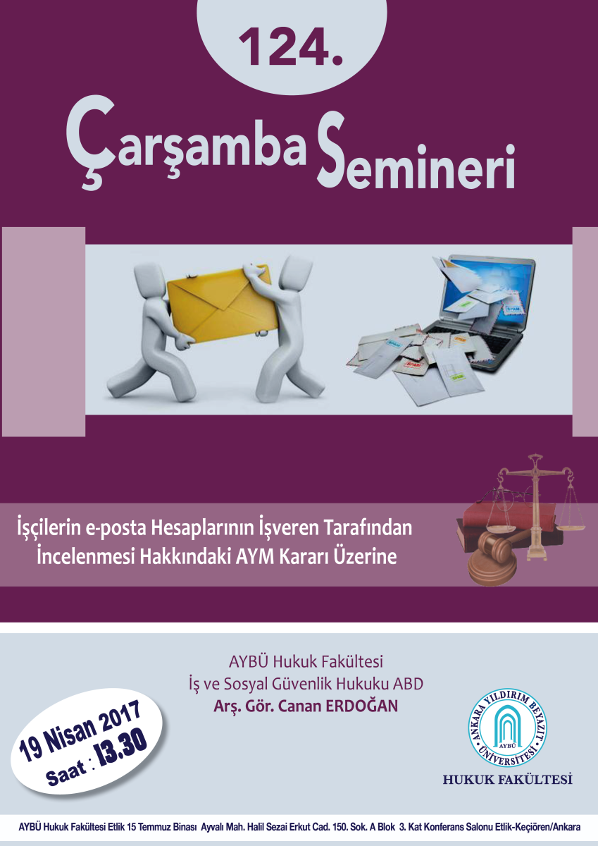 AYBÜ Hukuk Fakültesi Çarşamba Semineri 124–İşçilerin e-posta Hesaplarının İşveren Tarafından İncelenmesi Hakkındaki AYM Kararı Üzerine