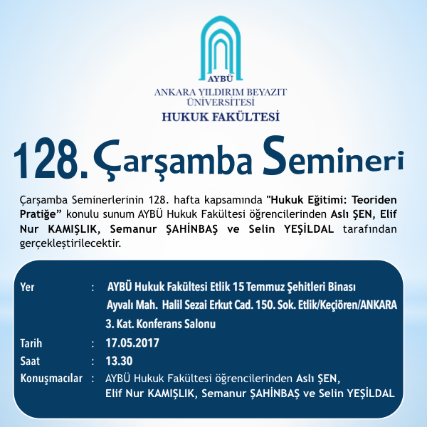AYBÜ Hukuk Fakültesi Çarşamba Semineri 128-Hukuk Eğitimi : Teoriden Pratiğe