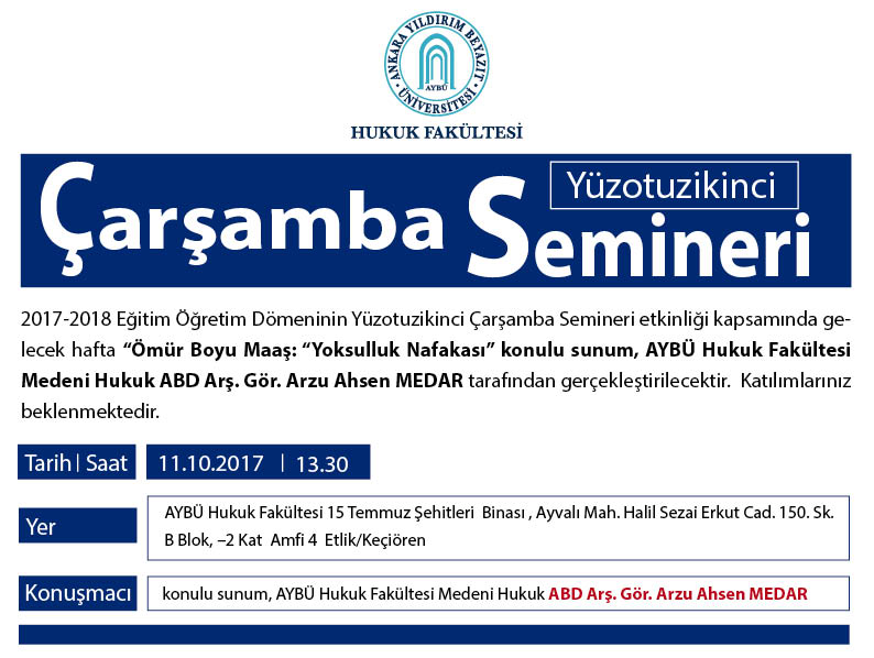 AYBÜ Hukuk Fakültesi Çarşamba Semineri 132- Ömür Boyu Maaş: Yoksulluk Nafakası