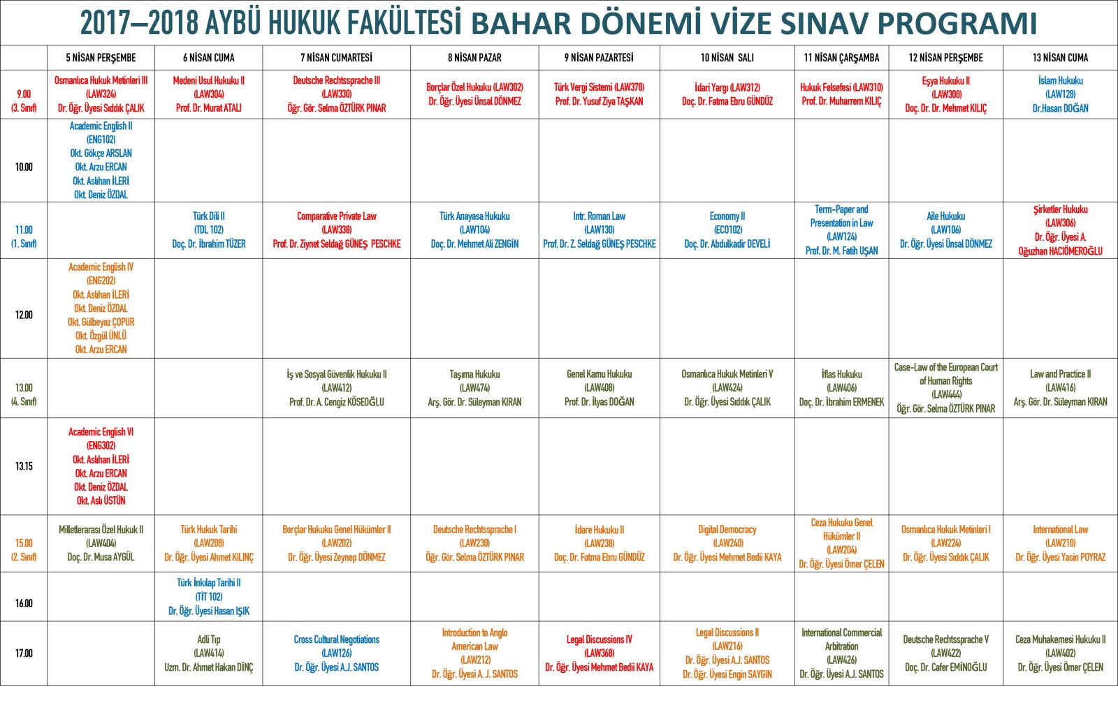 2017-2018 Eğitim–Öğretim Yılı Bahar Dönemi Vize Programı