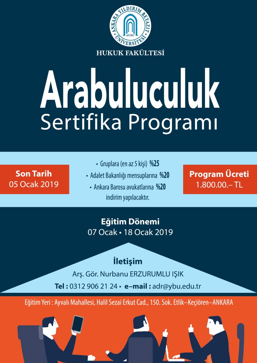 7 - 18 Ocak 2019 tarihleri arasında yapılacak olan hukuk uyuşmazlıklarında arabuluculuk sertifika programımız için