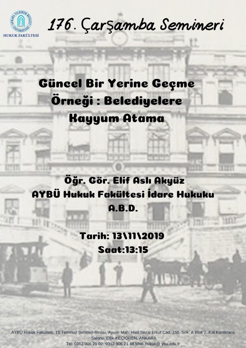 AYBÜ Hukuk Fakültesi 176. Çarşamba Semineri - Güncel Bir Yerine Geçme Örneği : Belediyelere Kayyum Atama