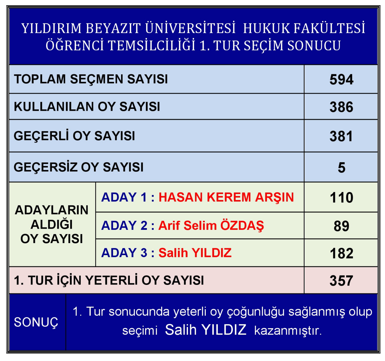 02.12.2014 TARİHİNDE YAPILAN ÖĞRENCİ TEMSİLCİLİĞİ SEÇİM SONUCU