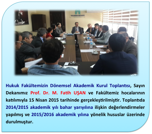 YBÜ Hukuk Fakültesi Dönemsel Akademik Kurul Toplantısı 15 Nisan 2015 Tarihinde Gerçekleşmiştir.