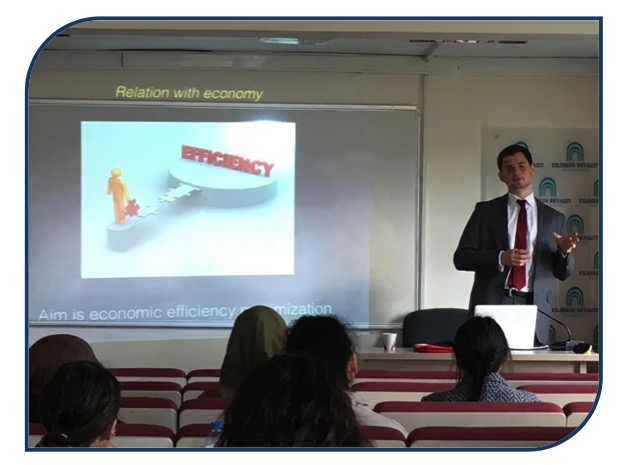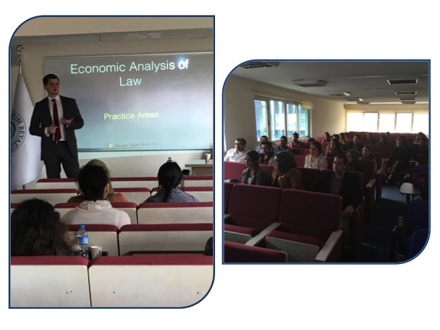 Chambers & Partners tarafından 2016 yılında Türkiye’nin En İyi Hukuk Firması Ödülünü kazanan Balcıoğlu Selçuk Akman Keki Avukatlık Ortaklığı’nda çalışan Avukat Barış YÜKSEL, Fakültemizde Introduction to Economic Analysis of Law dersi kapsamında iktisadi analizin ülkemizde uygulandığı rekabet hukuku ve regülasyona ilişkin bir sunum gerçekleştirmiştir. Sunumun akabinde Sayın YÜKSEL, öğrencilerle mesleğe ilişkin bir söyleşi de bulunmuştur.