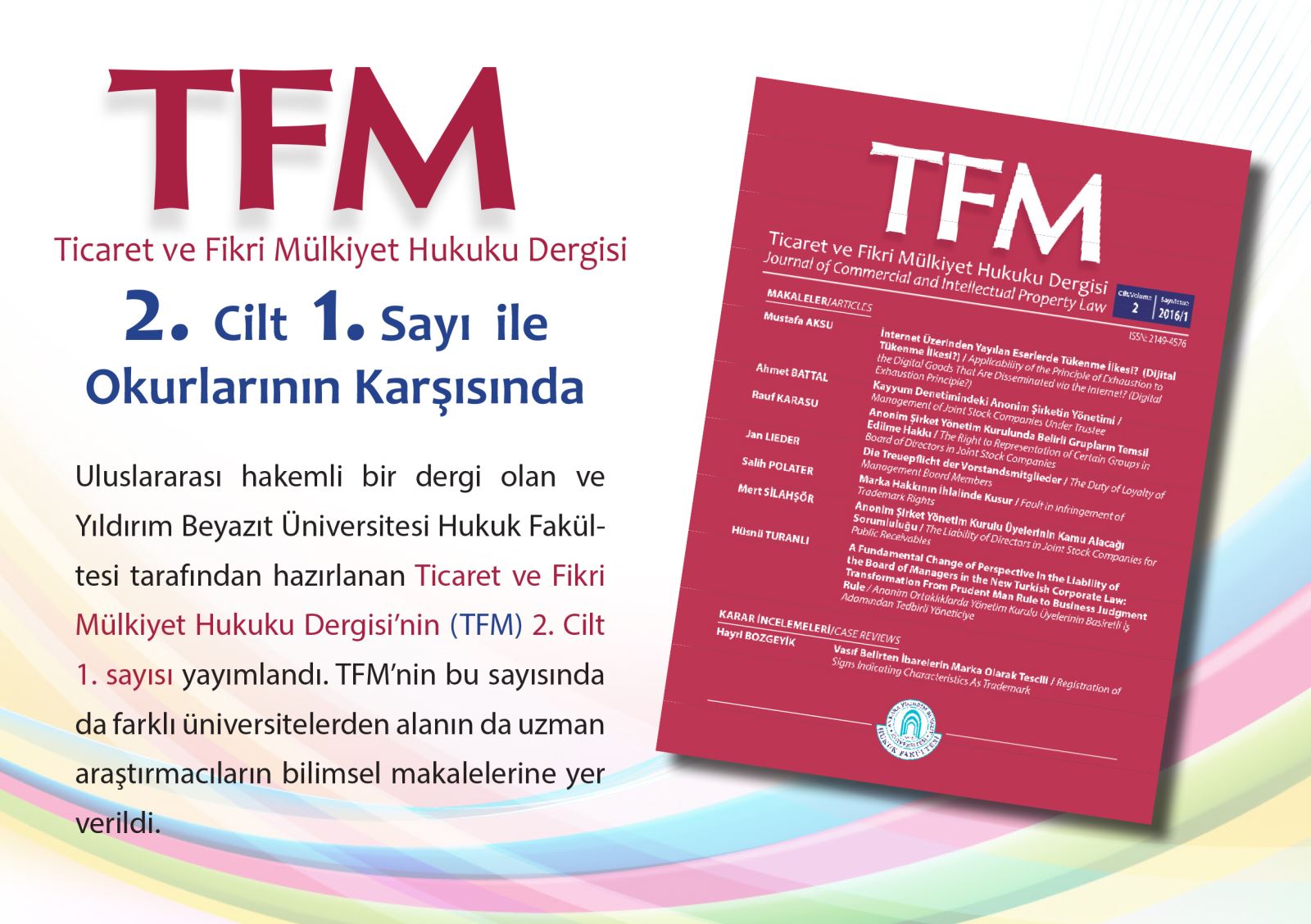 Ticaret ve Fikri Mülkiyet Hukuku Dergisi (TFM) 2. Cilt 1. Sayısı İle Okurlarının Karşısında