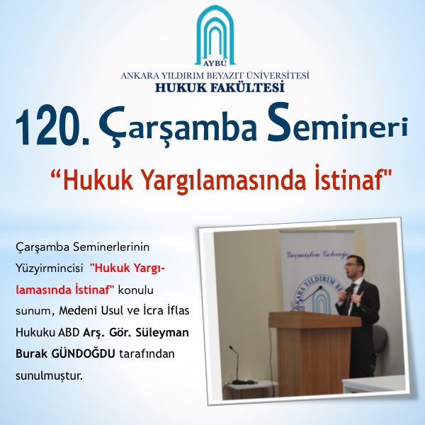AYBÜ Hukuk Fakültesi Çarşamba Semineri 120-Hukuk Yargılamasında İstinaf Adlı Sunum Gerçekleştirildi.