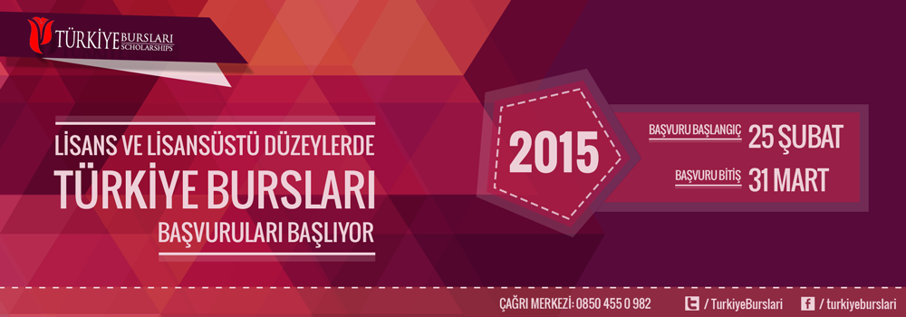 Türkiye Burslarına başvurular 25 Şubat'ta başlıyor. Son başvuru tarihi 31 Mart 2015. Bu yıl lisans, yüksek lisans ve doktora başvuruları aynı dönemde alınacaktır.
