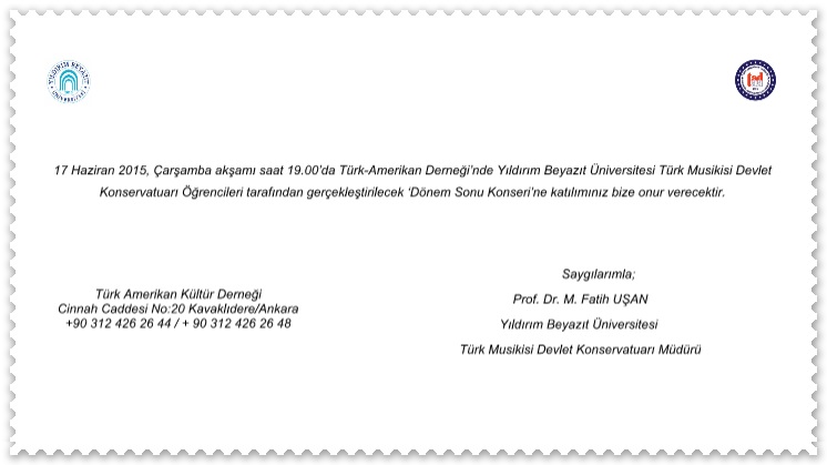 YBÜ Türk Musikisi Devlet Konservatuarı ‘Dönem Sonu Konseri’