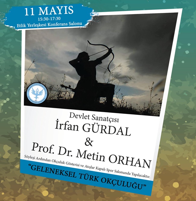 Üniversitemiz Etlik Yerleşkemizde Ünlü Sanatçı İrfan GÜRDAL ve Prof. Dr. Metin ORHAN' ın katılımıyla "Geleneksel Türk Okçuluğu" programı 11 Mayıs 2016 Çarşamba günü saat 15:30/17:30 da gerçekleştirilecektir. Program içerisinde katılımcılara "Geleneksel Türk Okçuluğu" ok atışı ve gösterimi yapılacaktır.