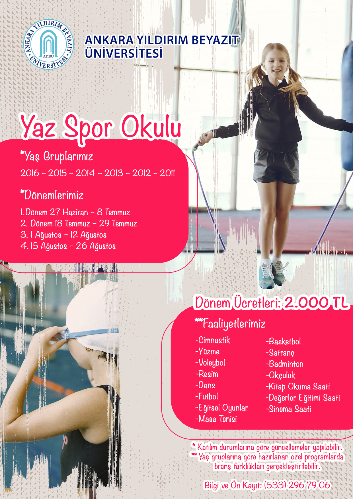 Ankara Yıldırım Beyazıt Üniversitesi İktisadi İşletmeler Müdürlüğü Yaz Spor Okulu Ön Kayıtları Başlamıştır