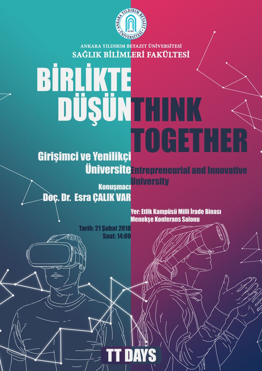 Üniversitemiz Sağlık Bilimleri Fakültesi organizasyonunda Etlik Milli İrade Binası Menekşe Salonunda 21 Şubat 2018 tarihinde saat 14:00’de “Girişimçi ve Yenilikçi Üniversite” adlı seminer düzenlenecektir.
