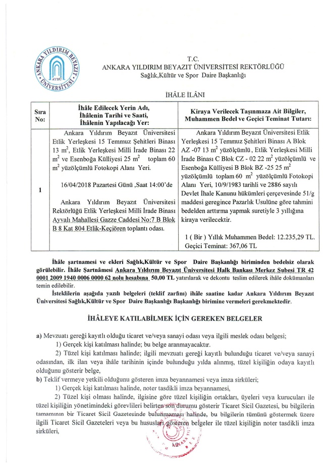 Sağlık, Kültür ve Daire Başkanlığı İHALE Duyurusu