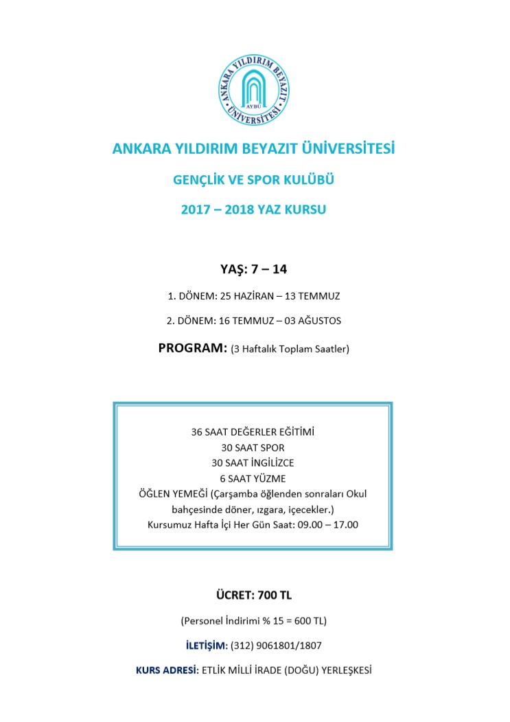 AYBU Gençlik ve Spor Kulübü Yaz Okulu Başlıyor