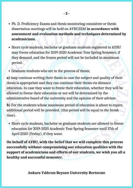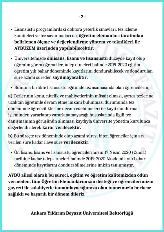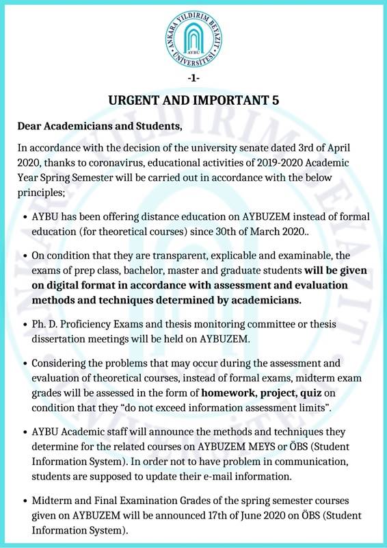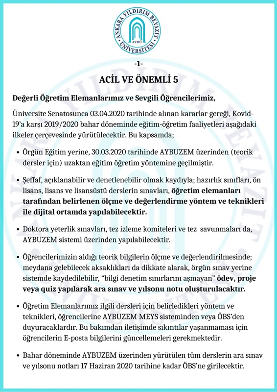 2019-2020 Bahar Dönemi Eğitim - Öğretim Faaliyetleri Hakkında