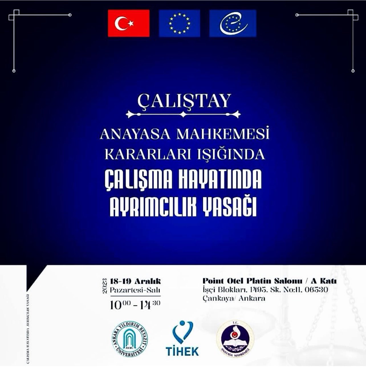 Türkiye İnsan Hakları ve Eşitlik Kurumu ile Üniversitemiz tarafından düzenlenen “Anayasa Mahkemesi Kararları Işığında Çalışma Hayatında Ayrımcılık Yasağı” konulu çalıştayı onurlandırmanızı dileriz.