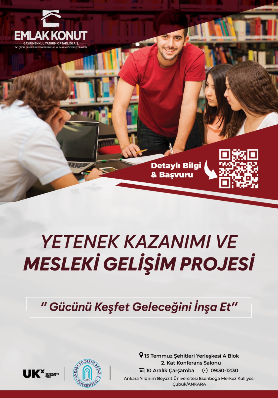 1. Projenin Genel Amacı ve Vizyonu “Emlak Konut Genç Yetenek Kazanım ve Mesleki Gelişim Projesi”, Emlak Konut GYO güvencesiyle, inşaat ve gayrimenkul sektörlerinde nitelikli insan kaynağını güçlendirmeyi, genç yeteneklere erişimi kolaylaştırmayı ve eğitim–sektör entegrasyonuna yeni bir model kazandırmayı amaçlayan ulusal ölçekte bir gelişim programıdır. Bu proje, üniversite, meslek yüksekokulu ve meslek lisesi öğrencilerinin hem mesleki hem kişisel gelişim süreçlerini destekleyerek, geleceğin profesyonellerini sektöre kazandırmayı hedeflemektedir. Program kapsamında gençlerin potansiyelleri bilimsel yöntemlerle ölçülmekte; kariyer rehberliği, uygulamalı eğitimler, çalıştaylar ve sektörle doğrudan etkileşim fırsatlarıyla desteklenmektedir.