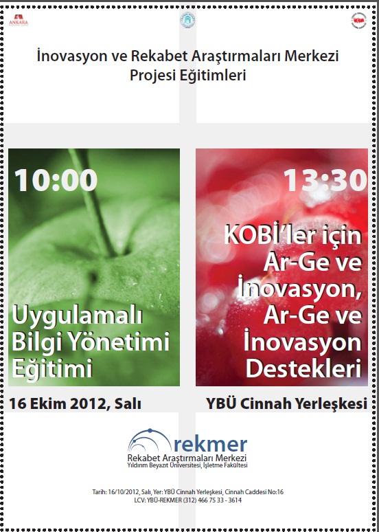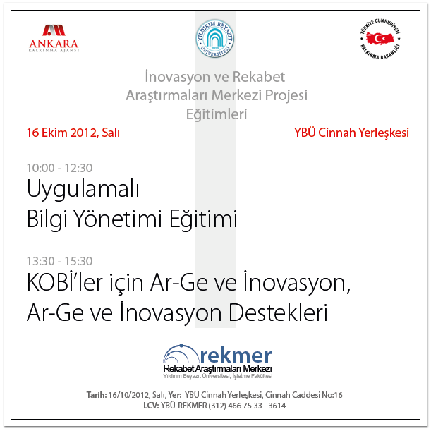 Üniversitemizin ilk araştırma merkezi olan "Rekabet Araştırmaları Merkezi", iş dünyası ve akademisyenlere yönelik bir günlük eğitim planlamıştır. Eğitimler, içerik olarak bilgi yönetimi ve Ar-Ge süreçlerinin kurumsal ve uygulamasına dair sunumlar içermektedir. KOBİ'ler ve araştırmacılar için Ar-Ge ve Inovasyon Hibe Programları konusunda detaylı bilgiler verilecektir. Eğitimler içerik olarak hem akademisyen hem de sahadaki uygulayıcılar tarafından verilecektir. KOBİ temsilcileri, genç girişimciler ve akademisyenlerin katılımına açıktır. Eğitim tarihi ve yeri EK'teki afişlerde yer almaktadır.
