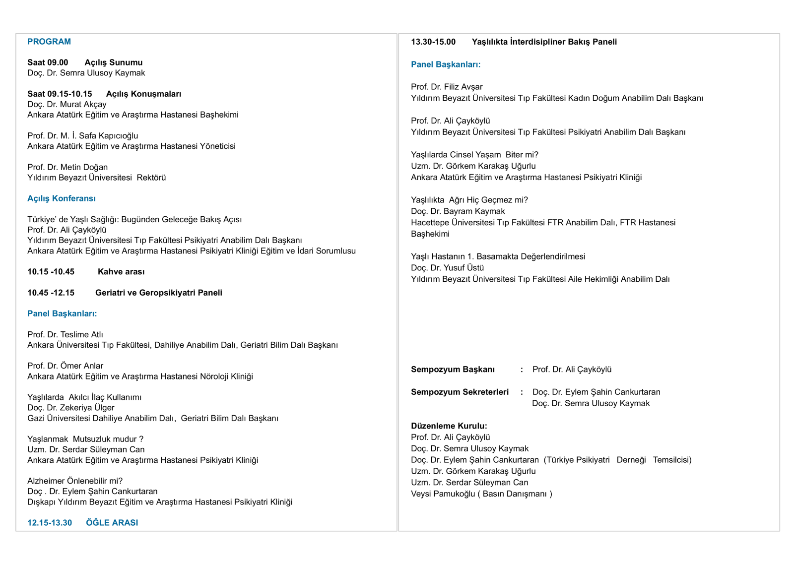 1. Psikiyatri Günleri - Yaşlıya Bakış Sempozyumu