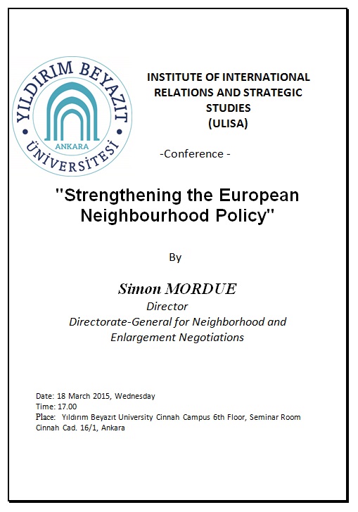 Uluslararası İlişkiler ve Stratejik Araştırmalar Enstitüsü tarafından "Avrupa Komşuluk Politikasının Güçlendirilmesi" başlıklı konferans, Avrupa Komisyonu  ‘Genişleme Stratejisi ve Politikası’ Strateji ve Türkiye  Müdürü Simon Mordue'nün katılımıyla gerçekleşecektir.Tüm Akademik personel ve öğrenciler davetlidir.