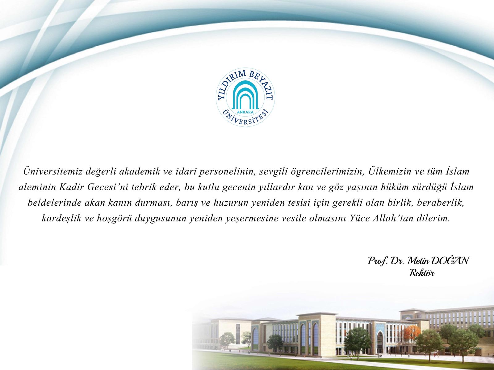 Rektörümüz Prof Dr. Metin DOĞAN’ ın Kadir Gecesi Kutlama Mesajı