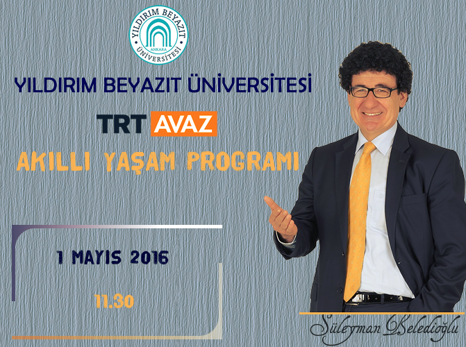 Üniversitemizde Süleyman BELEDİOĞLU’nun sunumuyla gerçekleştirilen Akıllı Yaşam Programı 1 Mayıs 2016 saat: 11.30 da TRT AVAZ’ da yayınlanacaktır.