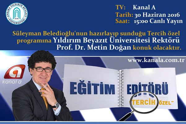 Kanal A kanalında 30 Haziran 2016 saat 15:00 canlı olarak yayınlanacak programda Sayın Rektörümüz Üniversitemizi tanıtacaktır.