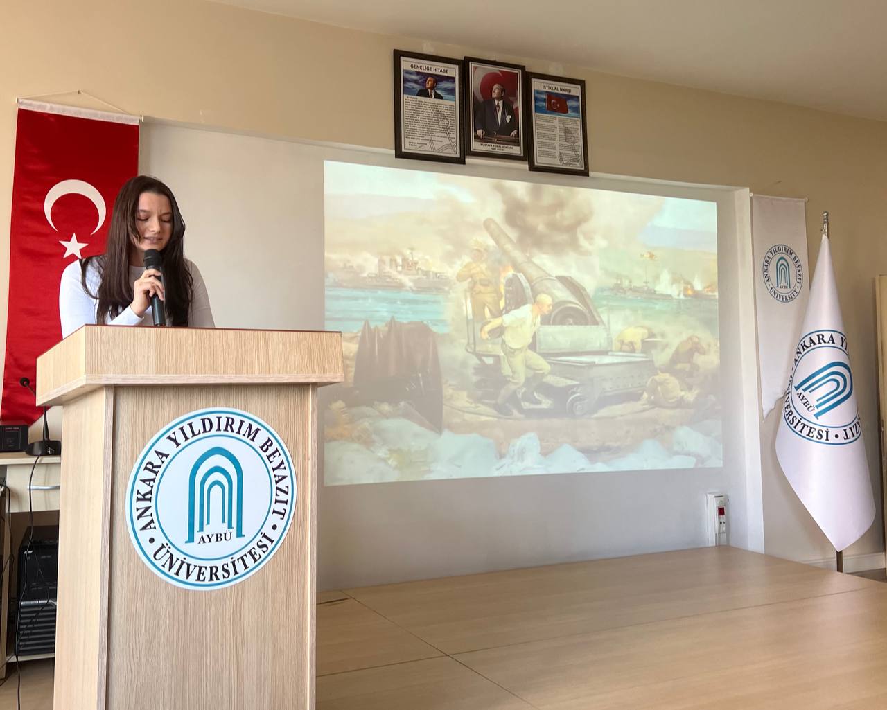 18 Mart Çanakkale Zaferi ve Şehitleri Anma Programı, Tuzgölü Öğrenci Topluluğu’nun organizasyonu ile fakültemiz konferans salonunda gerçekleştirilmiştir. Katılımın yüksek olduğu program; saygı duruşu ve İstiklal Marşı ile başlamış, Öğr. Gör. Mesut Emre BALCI hocamızın günün anlam ve önemini anlatan konuşması ile devam etmiş, Uluslararası Ticaret ve Lojistik Bölümü 4.sınıf öğrencimiz Ezgi GÜNEŞ’in seslendirdiği Mehmet Akif ERSOY’un Çanakkale Şehitlerine şiiri ve Çanakkale Zaferi belgesel gösterimi ile sonlanmıştır. Aziz şehitlerimizin ruhu şad olsun.