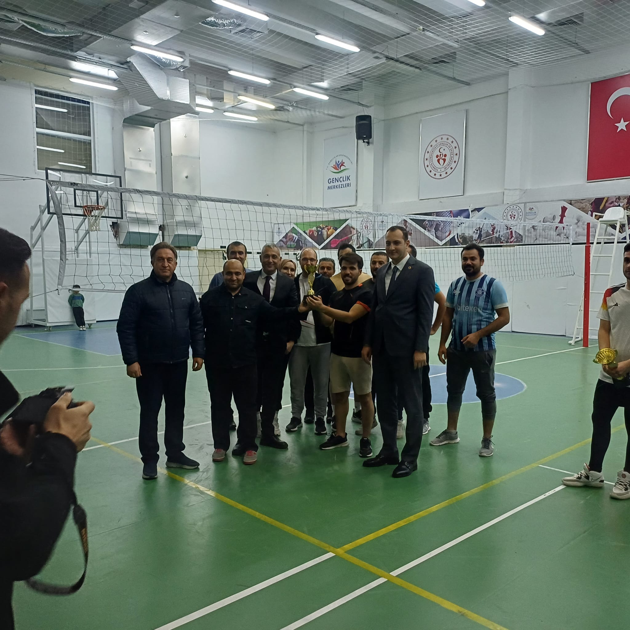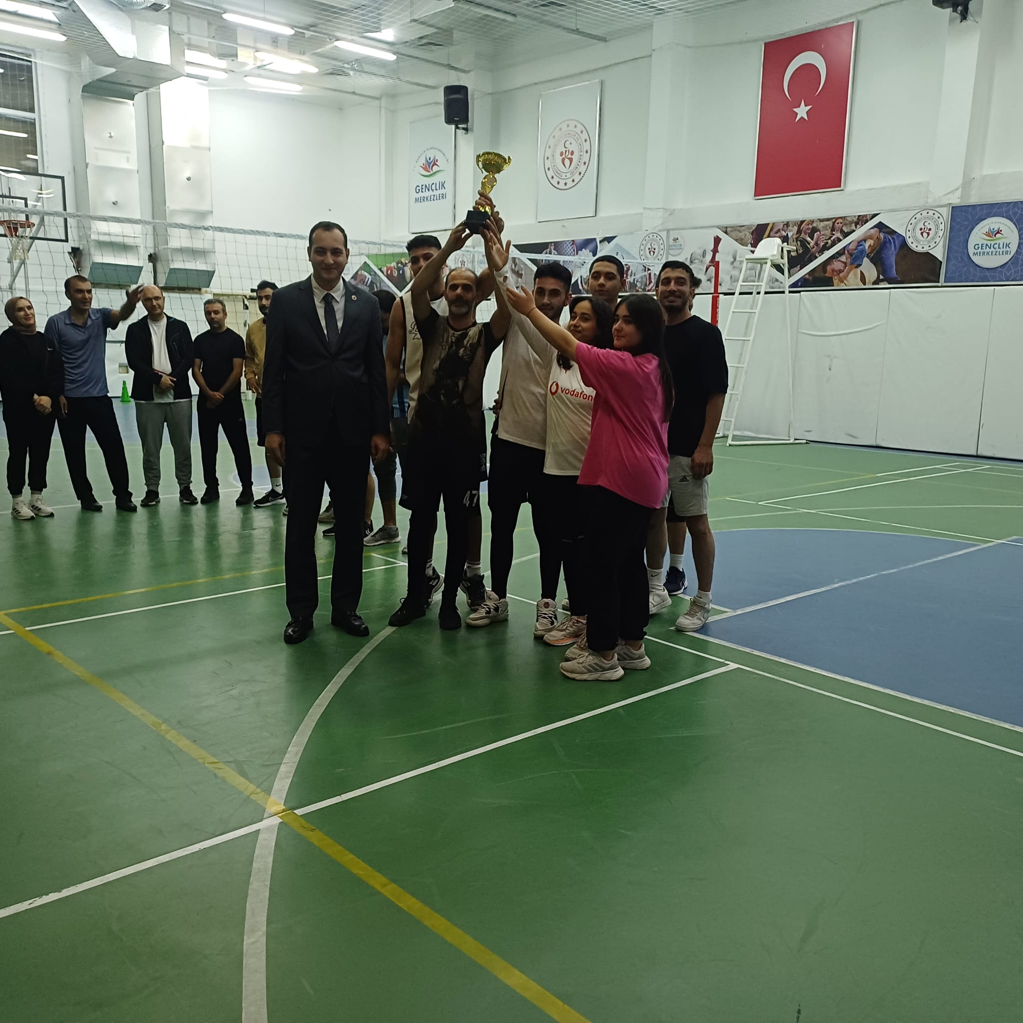 Şereflikoçhisar Gençlik Spor İlçe Müdürlüğü’nün düzenlediği Cumhuriyet Turnuvaları kapsamında öğrencilerimiz birçok farklı branşta mücadele etmektedir. Bu kapsamda; Üniversite, İlçe Emniyet Müdürlüğü ve Jandarma İlçe Komutanlığı’nın katıldığı voleybol turnuvasında şampiyon olan takımımıza Şampiyonluk kupasını Kaymakam V. Evren Kaymakamı Sn. Bekir KINACI takdim etmiştir. Yüksekokul Müdürümüz Doç. Dr. Sn. Burhan GÜNAY, İlçe Emniyet Müdürü Sn. Mehmet Fatih SAVAŞ, Jandarma İlçe Komutanı Üsteğmen Sn. Eren ÖZTÜRK ve Başhekim Sn. Mehmet Ali SAĞLAM turnuvada ikinci olan İlçe Emniyet Müdürlüğü takımına ikincilik kupasını takdim etmişlerdir. Voleybol şampiyonluk maçı ve merasim törenine katılarak öğrencilerimizi onurlandıran Kaymakam V. Sn. Bekir KINACI, İlçe Emniyet Müdürü Sn. Mehmet Fatih SAVAŞ, Jandarma İlçe Komutanı Üsteğmen Sn. Eren ÖZTÜRK ve Başhekim Sn. Mehmet Ali SAĞLAM okulumuz ve öğrencilerimiz adına teşekkür ediyoruz.