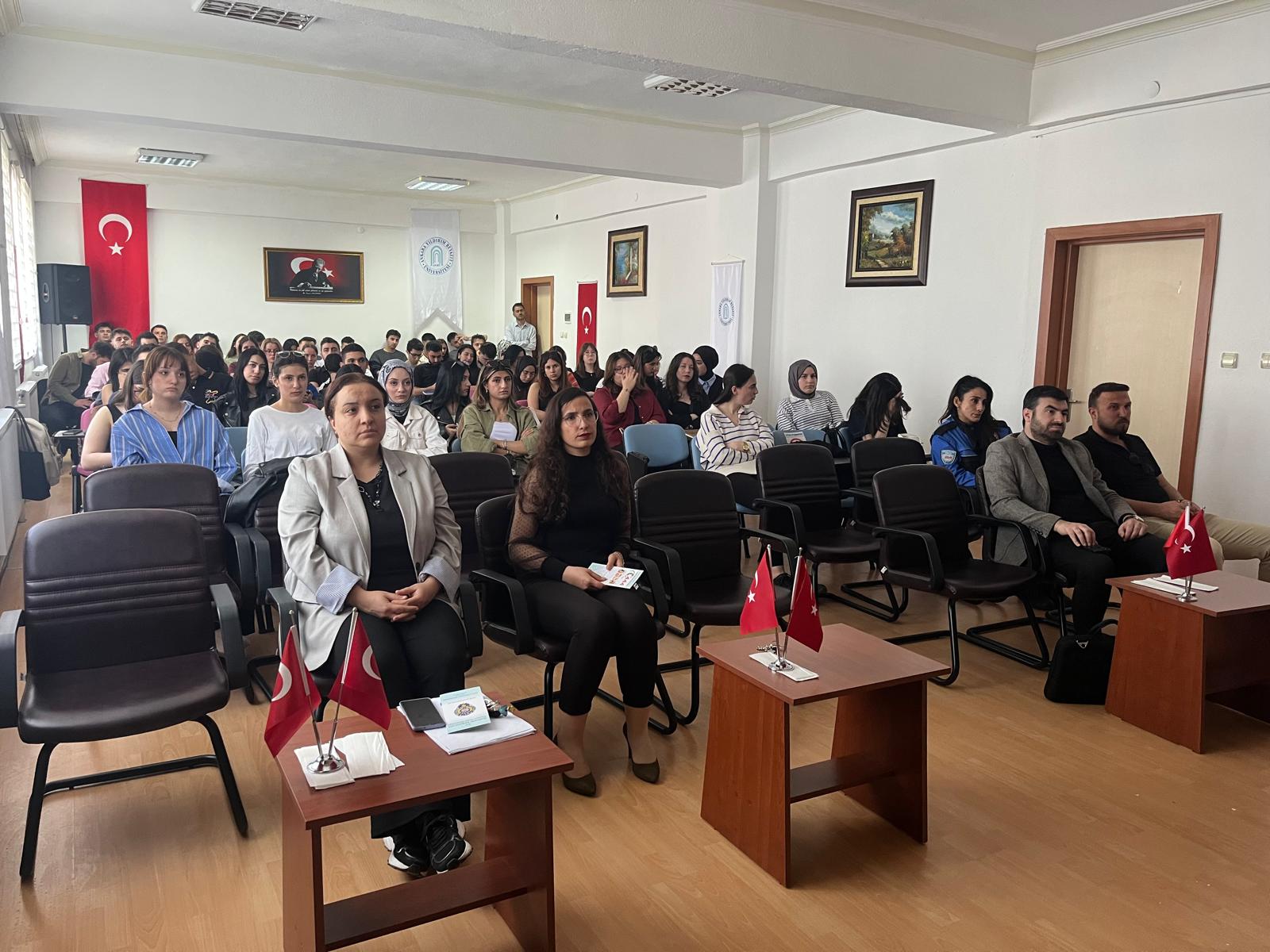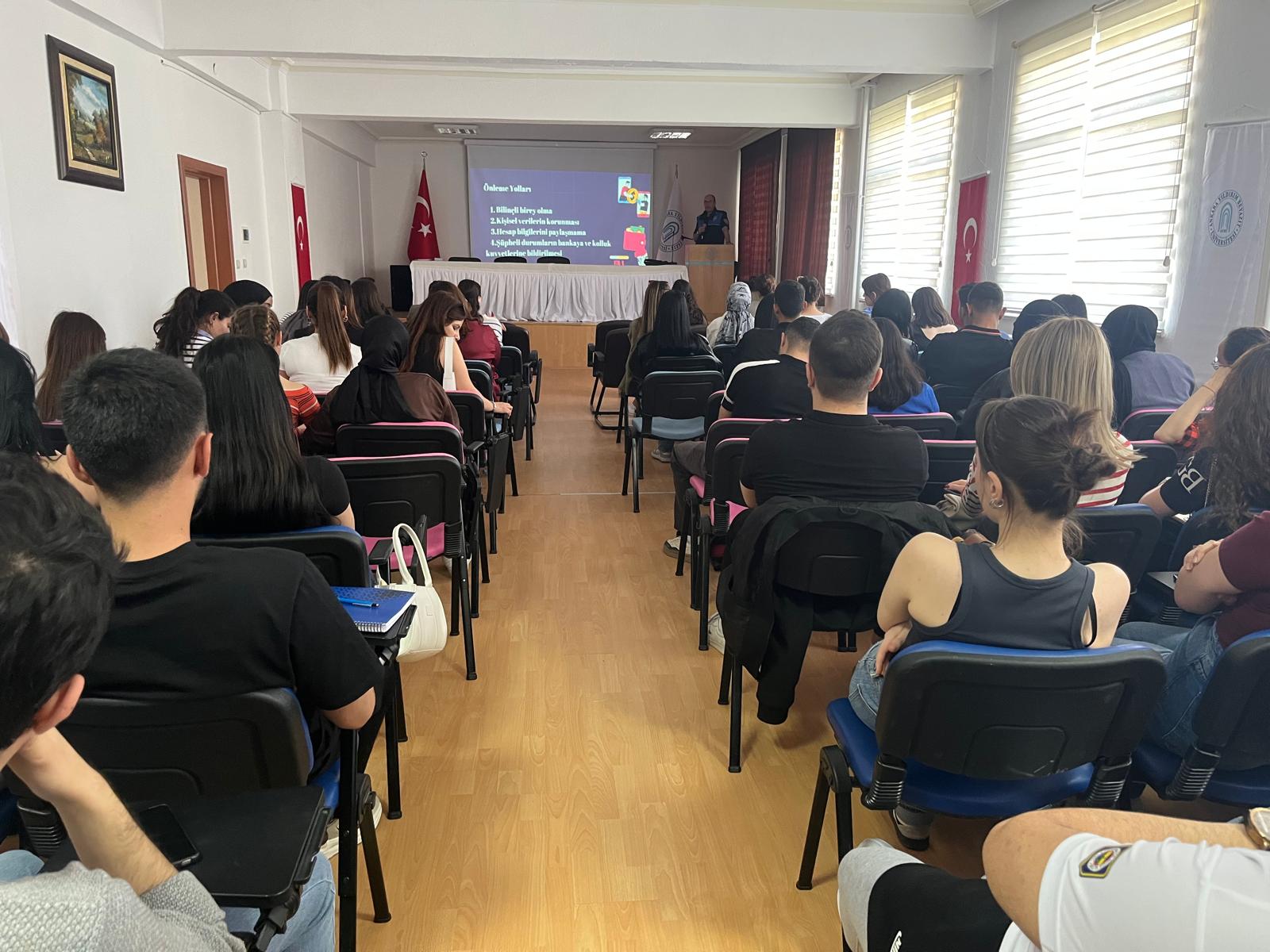 Şereflikoçhisar İlçe Emniyet Müdürlüğü Toplum Destekli Polisleri tarafından 22.04.2025 tarihinde saat 14.00'da Meslek Yüksekokulumuz Konferans Salonunda öğrencilerimize yönelik Banka Hesapları Dolandırıcılığı hakkında seminer düzenlendi.