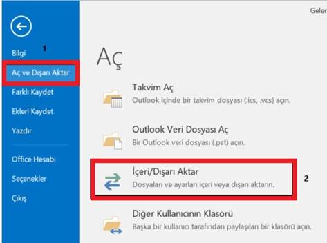 Aç ve Dışarı Aktar > İçeri/Dışarı Aktar öğeleri seçilir.