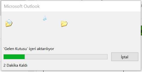 7 – İçe Aktarım Başarılı Öğeler belirtilen hesaba ve alt klasörlere aktarıldıktan sonra işlem tamamlanacaktır.