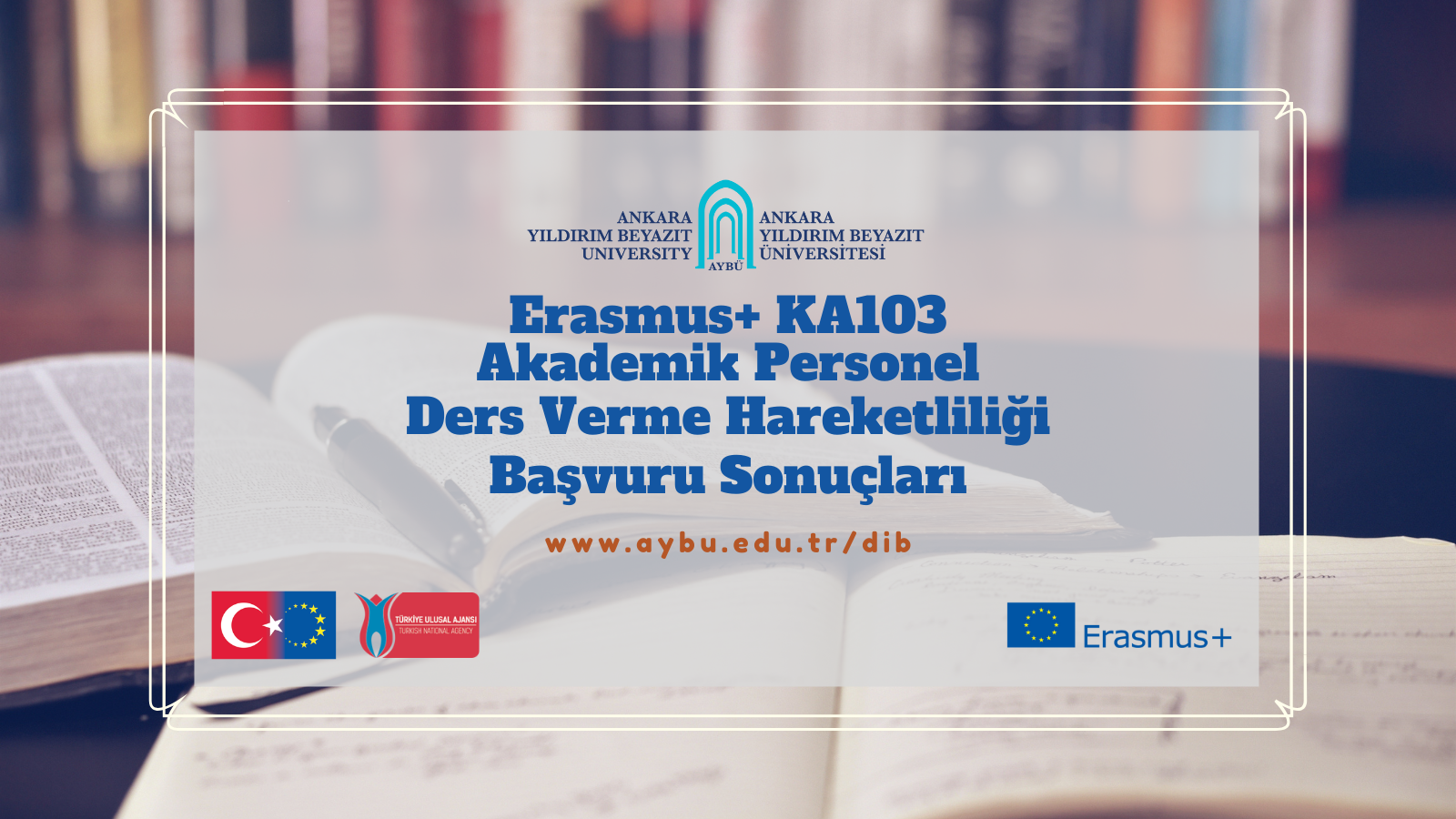 AYBÜ 2021-2022 akademik yılı Erasmus+ Personel Ders Verme Hareketliliği nihai başvuru sonuçlarına ilişkin itiraz süreci tamamlanmış olup nihai haline kavuşan listeye aşağıdaki bağlantıdan erişilebilmektedir.