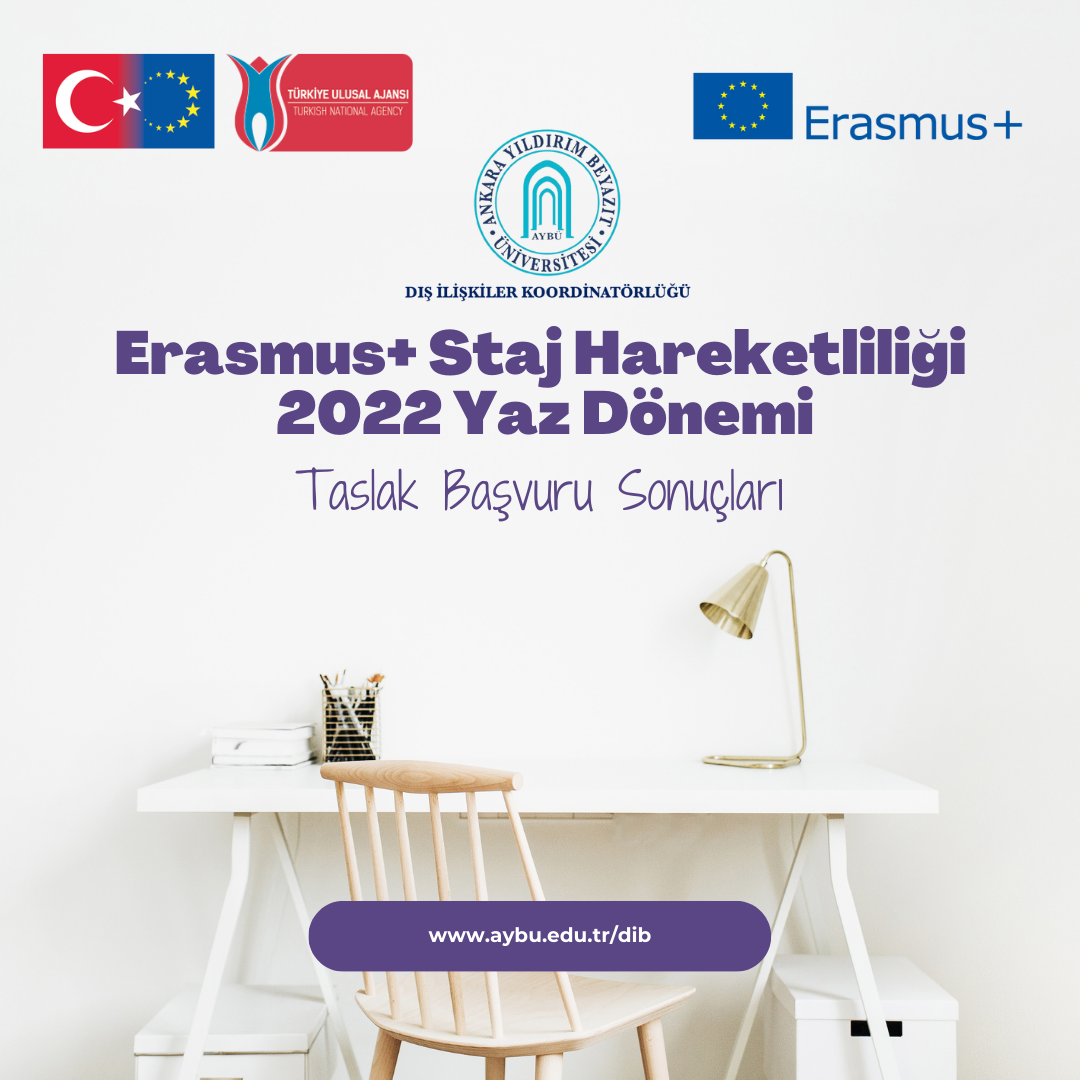 - Erasmus+ Staj Hareketliliği 2022 Yaz Dönemi Başvuru Taslak Sonuçları