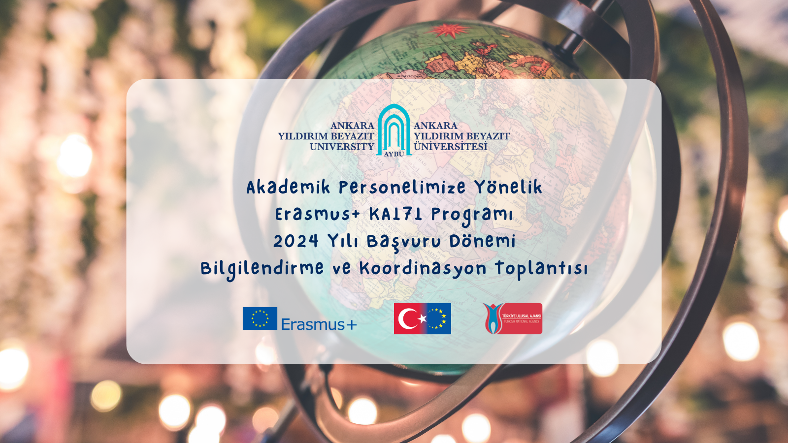 Dış İlişkiler Koordinatörlüğümüz farklı bölümlerden akademisyenlerimizin iş birliği ve katkılarıyla her sene Türkiye Ulusal Ajansı’na AB ve AB üyesi olmayan program ülkeleri dışında bulunan ülkelere yönelik KA171 projesi teslim etmekte, hibe almaya hak kazanan ülkelere iki yönlü olmak üzere personel ve öğrenci hareketliliği gerçekleştirilmesini sağlamaktadır. 2022 yılında 9, 2023 yılında 2 proje başvurumuzun olumlu sonuçlandığı KA171 çağrılarına üniversite olarak Şubat 2024 başvuru döneminde daha fazla akademik bölüm/programın katılımıyla mümkün olduğunca azami sayıda proje teslim etmeyi planlıyoruz. Bu amaç doğrultusunda özellikle akademik faaliyetlerini uluslararası bir zemine taşıma, üniversitemizin hâlihazırda sahip olduğu Erasmus+ KA171 anlaşmalarını kullanarak ya da yeni ülke/ortaklık anlaşmaları imzalayarak AB dışında ülkelerle öğrenci ve akademisyen hareketliliği gerçekleştirmeyi planlayan akademik birimlerimize yönelik Erasmus+ KA171 programı 2024 başvuru dönemi bilgilendirme ve koordinasyon Toplantısı düzenlenecektir.
