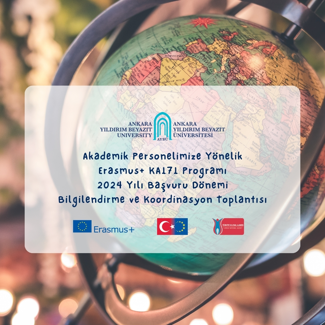 KA171 Projesi 2024 Başvuru Dönemi Bilgilendirme ve Koordinasyon Toplantısı 14 Aralık 2023 tarihinde çevrimiçi olarak gerçekleştirilmiştir. Toplantı kaydı ve toplantıda kullanılan bilgilendirici dokumanlar aşağıda sizlerle paylaşılmıştır. Proje başvurusu yapmak isteyen akademik personelimizin aşağıda yer alan Ankara Yıldırım Beyazıt Üniversitesi Dış İlişkiler Koordinatörlüğü KA171 Uluslararası Kredi Hareketliliği Proje Başvuru Formu’nu eksiksiz bir şekilde doldurarak en yakın zamanda koordinatörlüğümüze eposta üzerinden iletmeleri rica olunur.