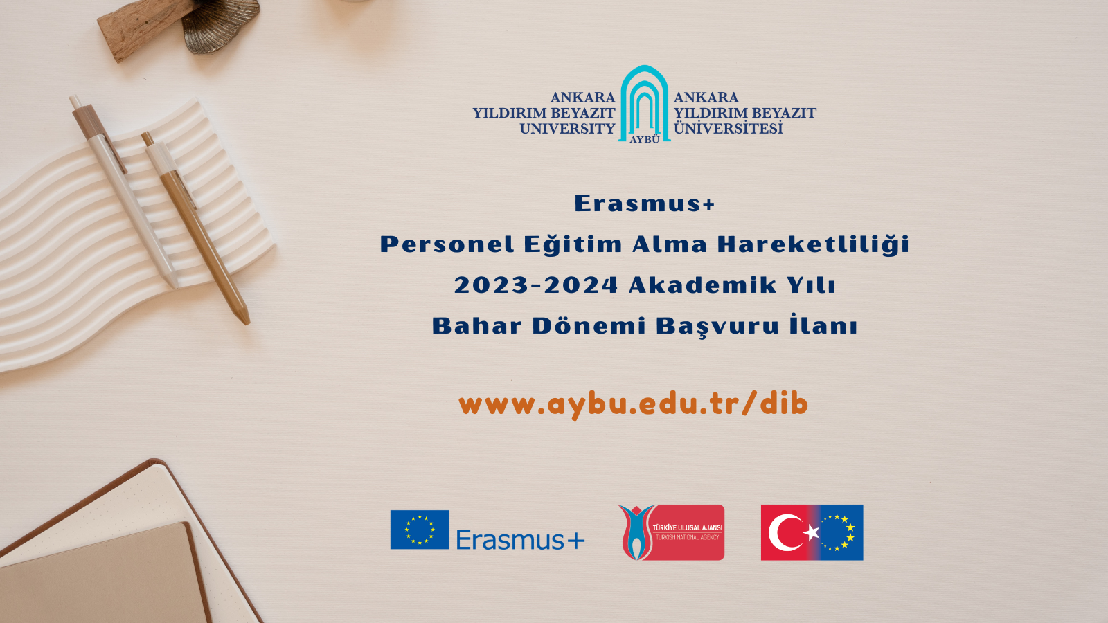 AYBÜ Erasmus+ Personel Eğitim Alma Hareketliliği 2023-2024 Akademik Yılı Bahar Dönemi başvuru süreci https://turnaportal.ua.gov.tr/giris üzerinden tamamen çevrim içi olarak yürütülecektir.