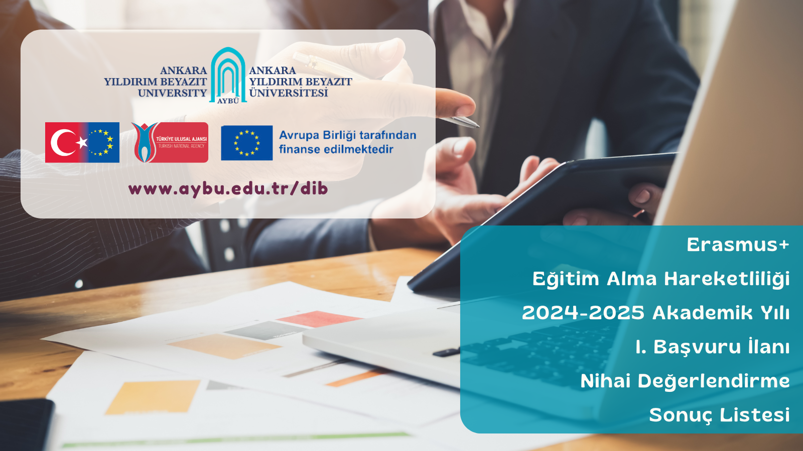 AYBÜ 2024-2025 akademik yılı Erasmus+ Personel Eğitim Alma Hareketliliği I. Başvuru İlanı nihai başvuru sonuçlarına ilişkin itiraz döneminde alınan dilekçeler ile bu süreçte sunulan kanıtlayıcı belgeler değerlendirilmiş ve gerekli güncellemeler yapılarak nihai liste oluşturulmuştur.