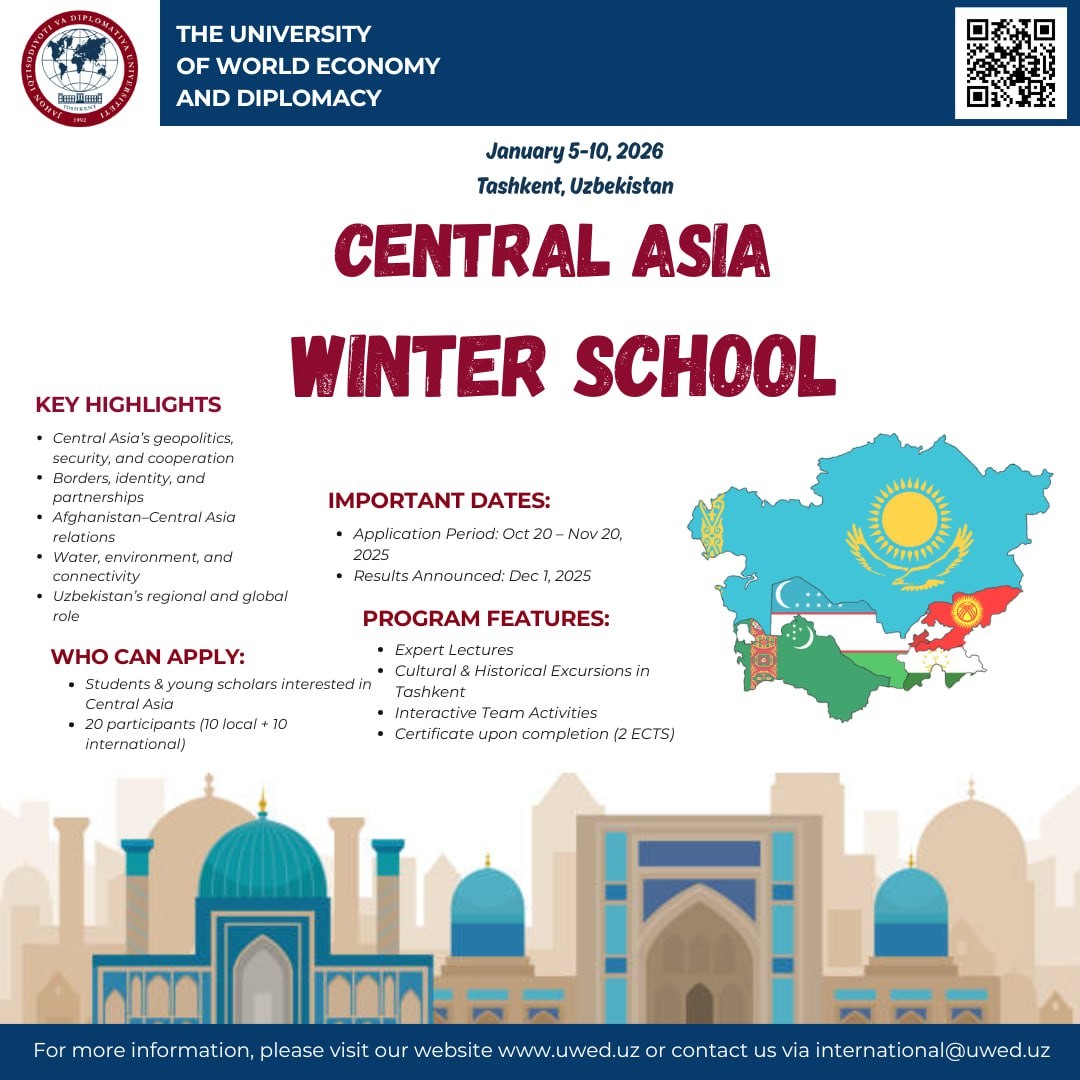 Özbekistan Dünya Ekonomisi ve Diplomasi Üniversitesi 2026 Orta Asya Kış Okulu