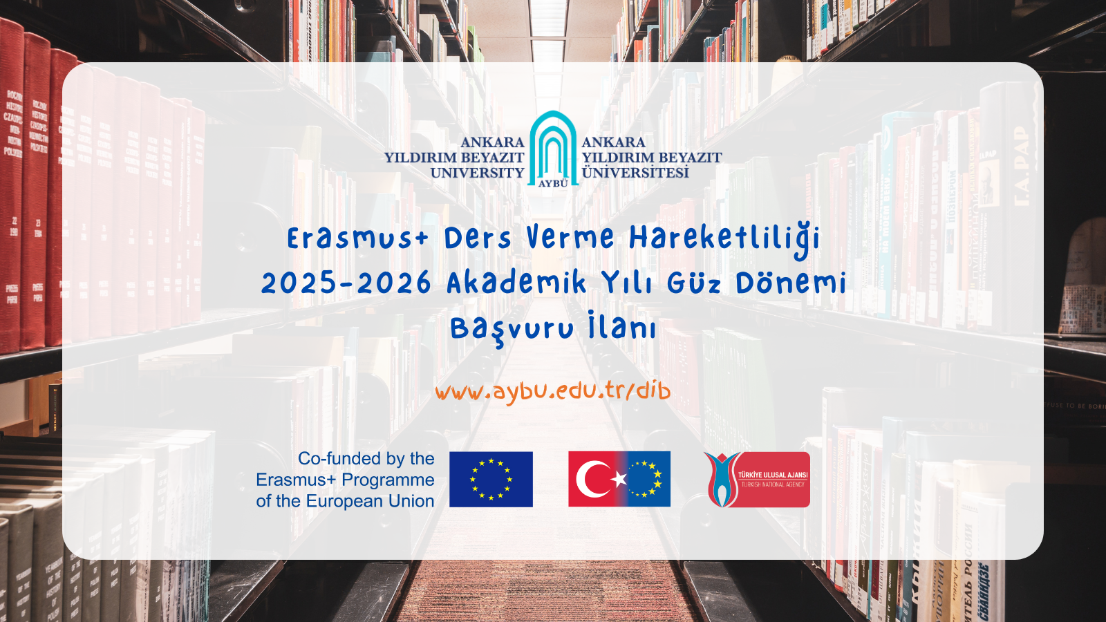 Erasmus+ Ders Verme Hareketliliği 2025-2026 Akademik Yılı Güz Dönemi Başvuru İlanı’na dair süreç Türkiye Ulusal Ajansı tarafından yönetilen Turna Portal üzerinden tamamen çevrim içi olarak yürütülecektir.