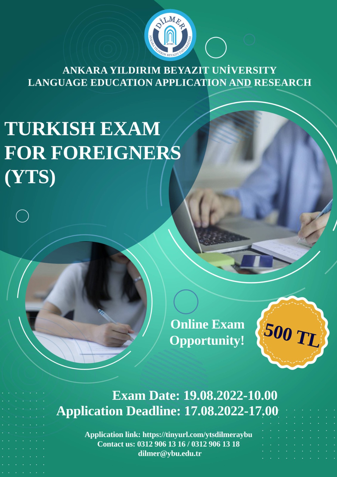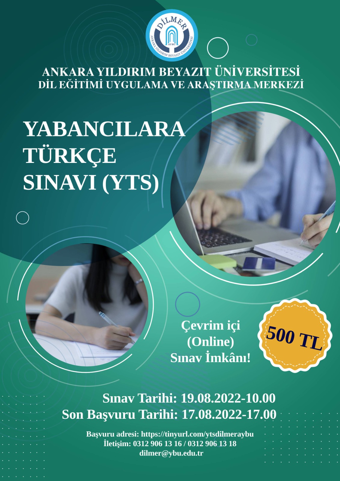 Adayların sınava çevrim içi (online) katılması mümkündür. Çevrim içi (online) YTS için adaylar başvurularını tamamlayıp ödeme dekontunu dilmer@ybu.edu.tr adresine gönderdikten sonra sınav günü sınavdan en geç yarım saat önce online sınav sisteminde hazır bulunacaklardır.