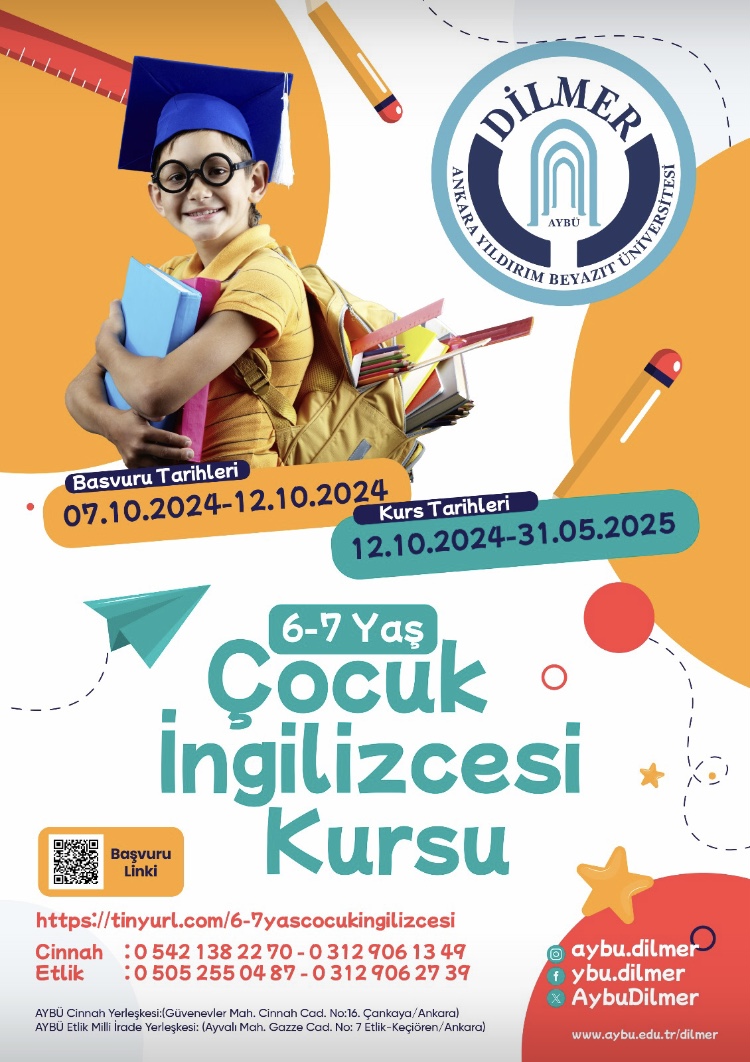 AYBÜ DİLMER bünyesinde yoğun talep üzerine açılan 6-7 yaş grubu için İngilizce kursu 12 Ekim 2024 tarihinde başlayacaktır.
