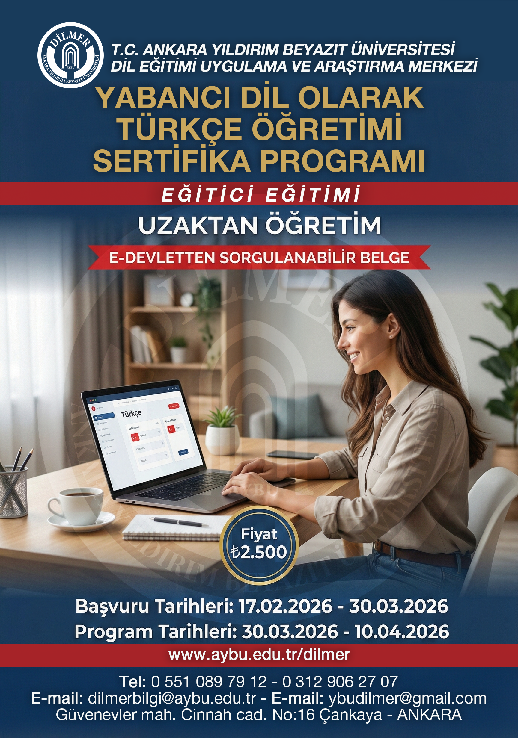 Ankara Yıldırım Beyazıt Üniversitesi Yabancı Dil Olarak Türkçe Öğretimi sertifika programı açılmıştır.