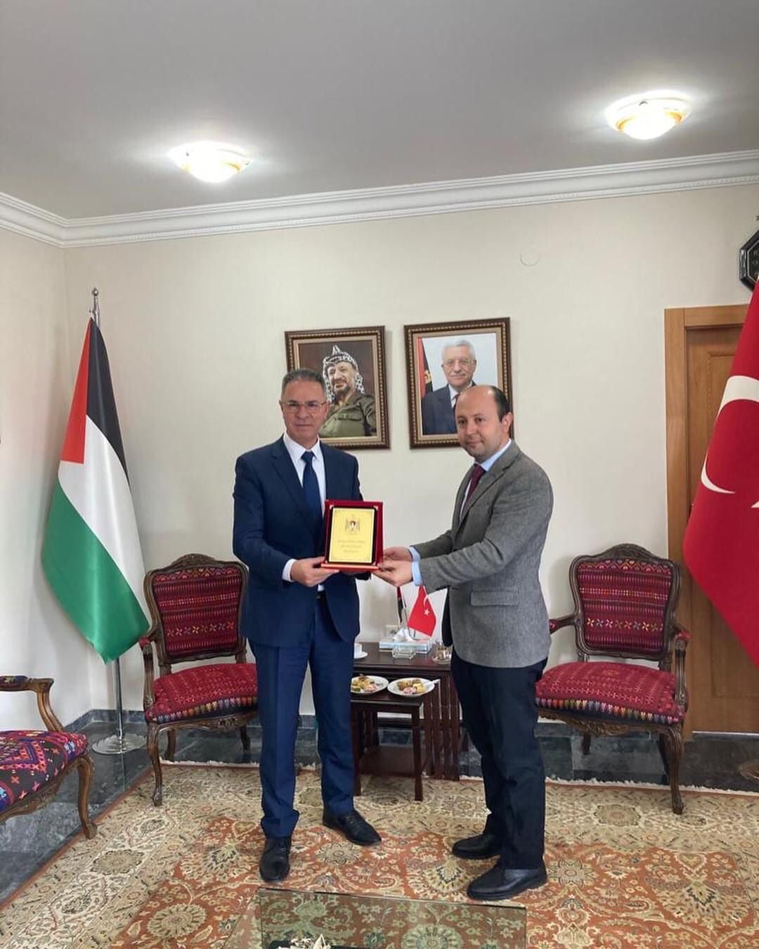 AYBÜ DİLMER Müdürümüz Bünyamin OĞUZ ve Müdür Yardımcımız Latif İLTAR Filistin Büyükelçisi Sayın Dr. Faed Mustafa’yı ziyaret ettiler.