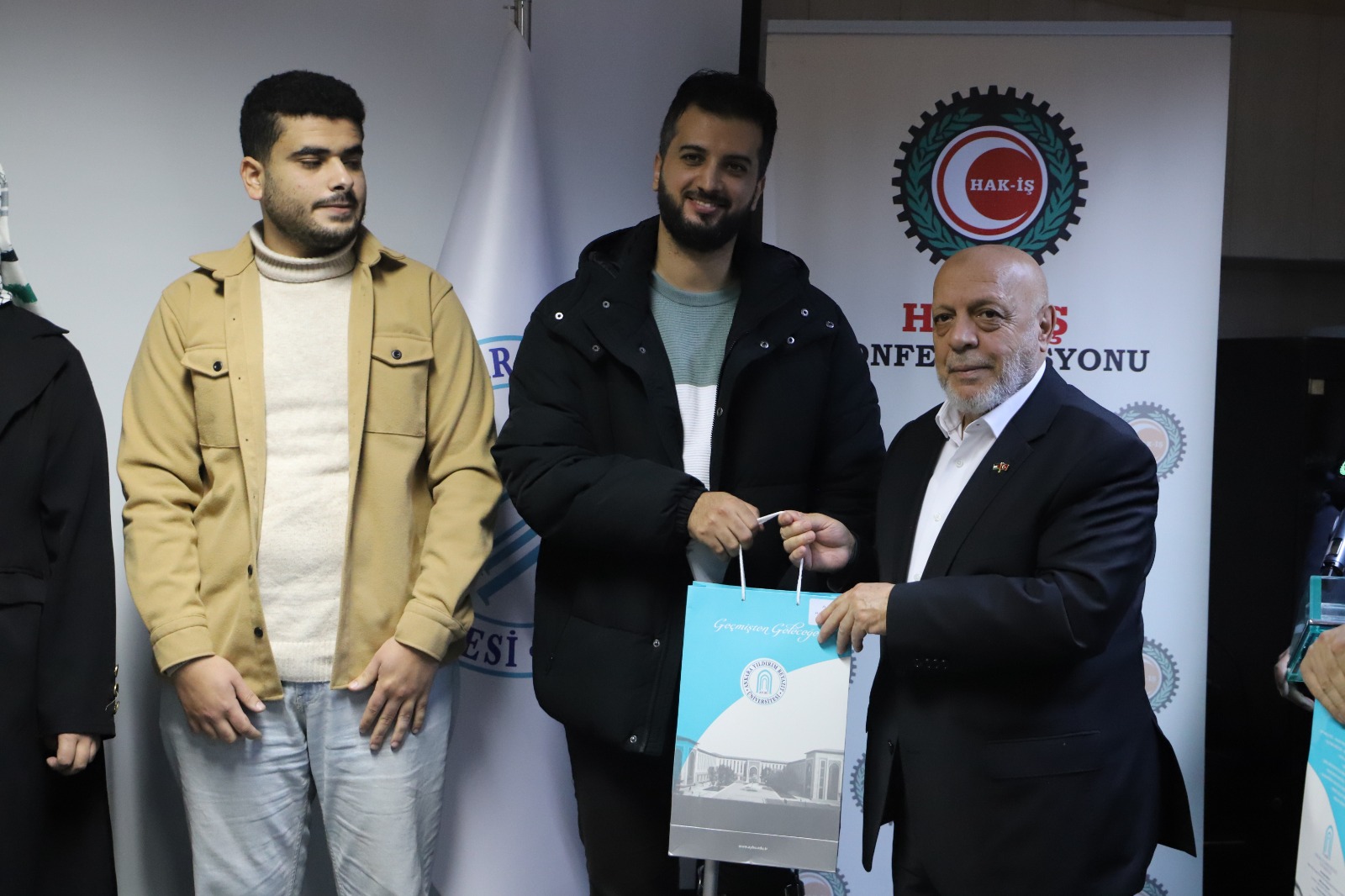 Rektörümüz Prof. Dr. Ali Cengiz Köseoğlu ise üniversitenin Filistinli öğrencilere her türlü desteği vermeye hazır olduğunu belirterek "Rektörlüğüm dönemince bir sürü faaliyet yaptık ama gerçekten en anlamlılarından birisi de buydu. Biz üniversite olarak öncelikle Filistin'den gelen öğrencilerimize her türlü kolaylığı sağlamaya, onların ihtiyaçlarını gidermeye lojistik destek vermeye çalıştık. Yani Ensar anlayışı içerisinde biz sizleri kardeş olarak görüyoruz ve Ensar anlayışı içerisinde üzerimize düşen ne varsa onu yapmaya hazırız. Konfederasyonumuz gerçekten bu anlamda her türlü fedakarlığı yapıp elini taşın altına soktu. HAK-İŞ Konfederasyonu zaten kardeş kuruluşumuz. Bütün vizyon ve misyon örtüşmesi yaşadığımız bir kuruluş. Ben hepinizi geldiğiniz seviye dolayısıyla tebrik ediyorum” dedi.
