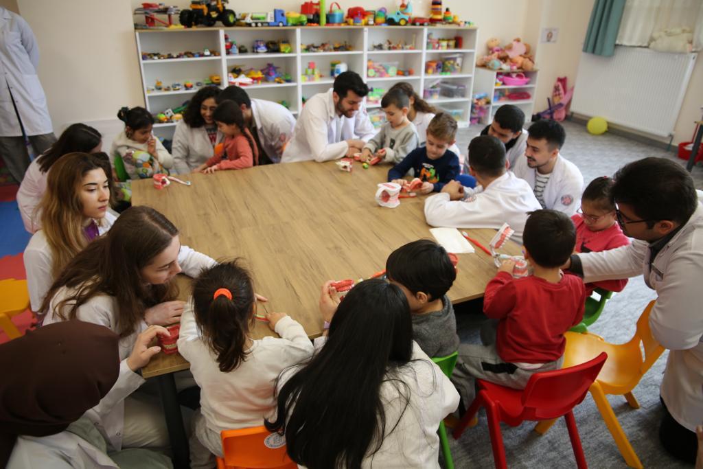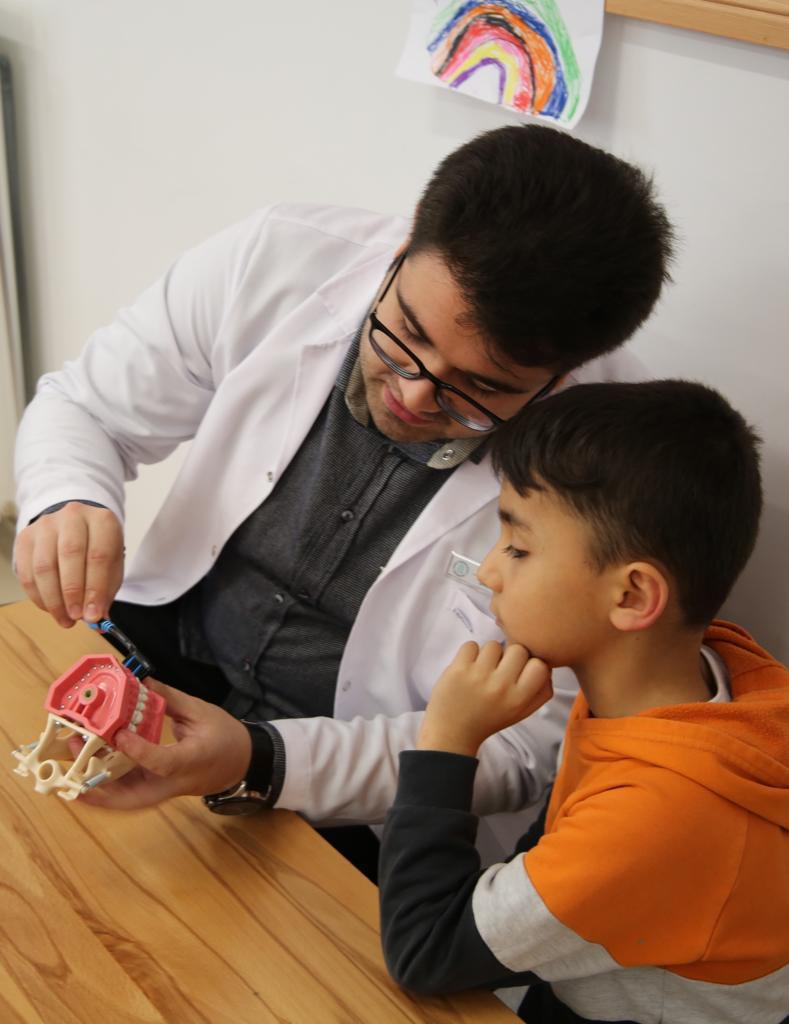 AYBÜ Esenboğa Külliyesi içinde yer alan KYK yurdunda kalan depremzede çocuklara ağız bakımı ve diş fırçalama eğitimi vermek için Sayın Rektörümüz Prof.Dr.İbrahim Aydınlı’nın katılımıyla bir etkinlik düzenledik. Sayın Dekanımız Prof.Dr.Filiz Aykent, öğretim üyemiz Doç.Dr.Özge Uslu Akçam, asistanlarımız, AYBÜ Diş Hekimliği Öğrencileri Birliği ve öğrencilerimizin düzenlediği etkinlikte çocuklara ağız bakımının önemi ve doğru diş fırçalama uygulamalı olarak anlatıldı. Ağız hijyenine yakınlaştıracak diş fırçası ve macunu hediye verildi.